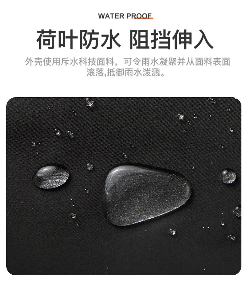 打破了传统面料的局限性,采用市面领先的防水黑科技——仿荷叶拒水拒污科技,使衣服表面能拥有像荷叶一样滴水不沾的性能。
