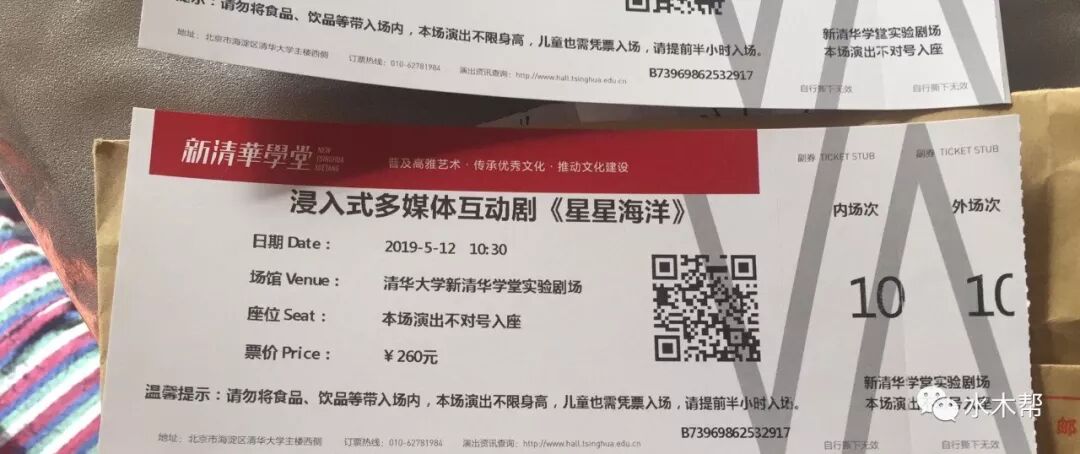 14060浸入式多媒体互动剧“星星海洋”亲子套票2张,现8折出售280元;演出时间:2019-05-12,10:30;地点:清华大学新清华学堂;不对号入座!