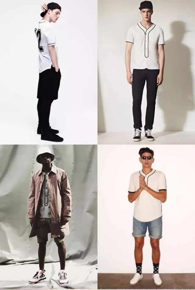 运动风这几年大举入侵时尚圈,许多精品品牌连着好几季在设计中融入运动元素,运动风和时尚的结合,已经是近年来男装很重要的一环。棒球球衣给人休闲、阳光和街头的形象,加上没有领子,剪裁宽松,不仅仅可以单穿,更有许多穿搭高手和其他单品做搭配,下半身搭上宽松的运动短裤走街头运动风,而配上修身的窄版裤与流苏乐福鞋就可以营造轻松的雅痞感觉,当然,如果希望棒球球衣有多功能的发展,最好选择没有花俏 LOGO或配色的款式,正因为棒球球衣穿搭起来有型又舒适,所以在欧美的夏日街头常常可以看见棒球球衣的踪影!