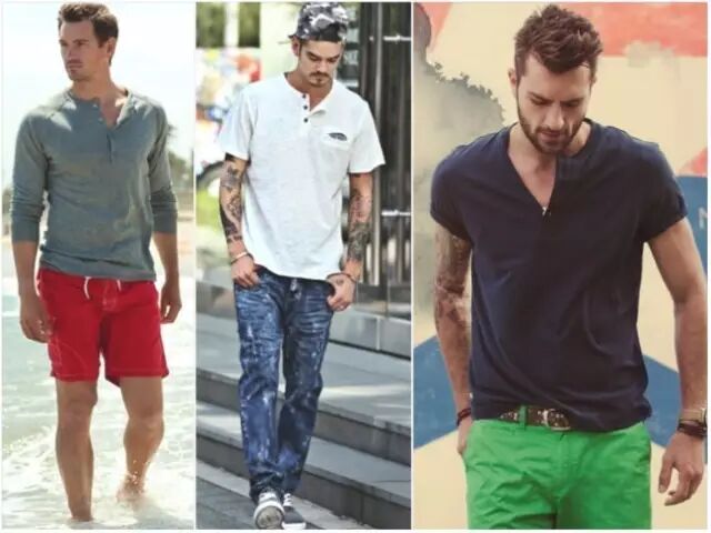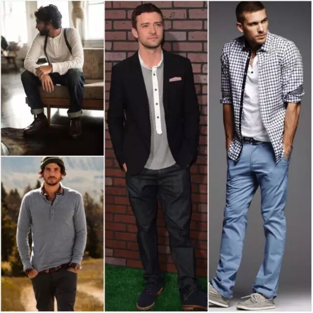 你会发现欧美街拍大部分的男士比较喜欢长袖的亨利衫,因为国外的日夜温差大,长袖的款式似乎比较实用,热的时候将袖口随性的卷起,配上短裤、皮製凉鞋,就可以营造男模下班随性又时尚的感觉,但是在内地受限于天气,长袖的穿法可能比较适合春秋。除此之外,亨利衫也是内搭的好选择,外面套上西装外套,或是和格文衬衫来搭配,因为领口的开扣设计,看起来比 T-shirt 更有随性感,在视觉上来说也不会太压迫,达到修饰脸型的效果。但是如果要选择短袖的亨利衫,尽量不要选择白色或是过度紧身的款式,避免被误以为穿内衣出门。