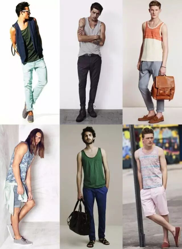 在选购无袖背心时还是有一些重点需要注意,首先领子和袖口的大小,你当然希望你的无袖上衣有年轻气息而没有啤酒肚大叔的松垮内衣感,我们想展现的是时尚与流行,也不想出现健身房肌肉猛男的训练服的感觉,所以建议袖口不要过度宽松,千万不要让奶头轻易外露,实在有碍观瞻,另外无袖上衣的肩带部分也不要过细,过度女性化。