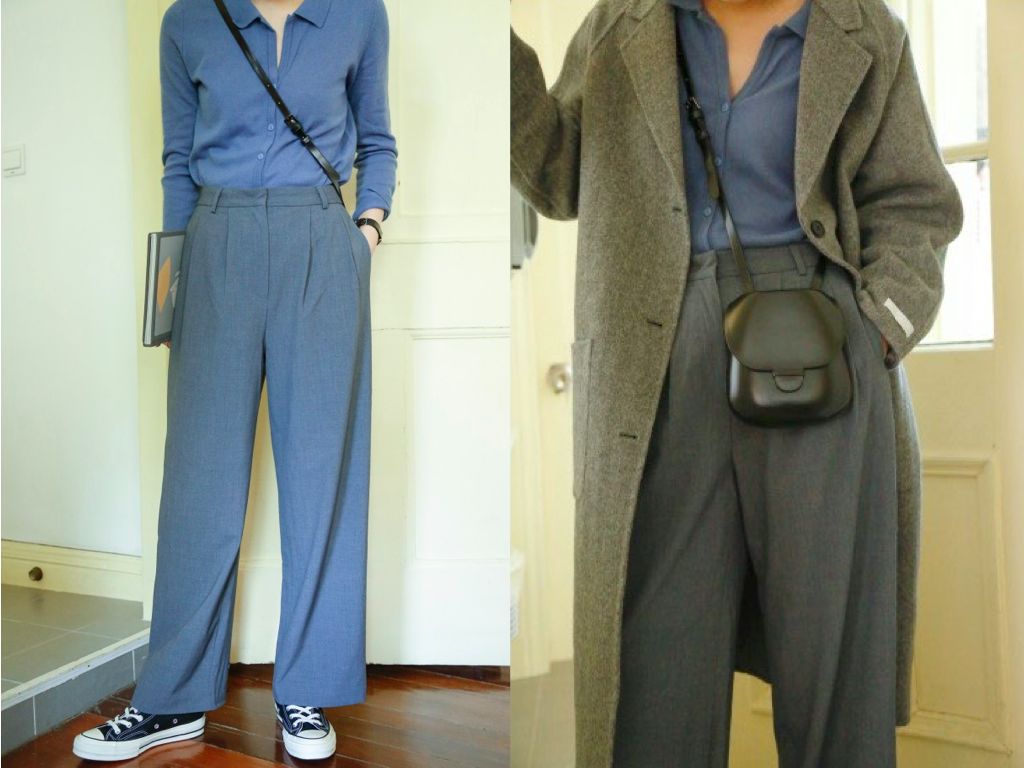 说来锥形裤其实比直筒裤更适合梨形腿粗。臀胯被遮住,脚踝这种细的部分也能收紧。