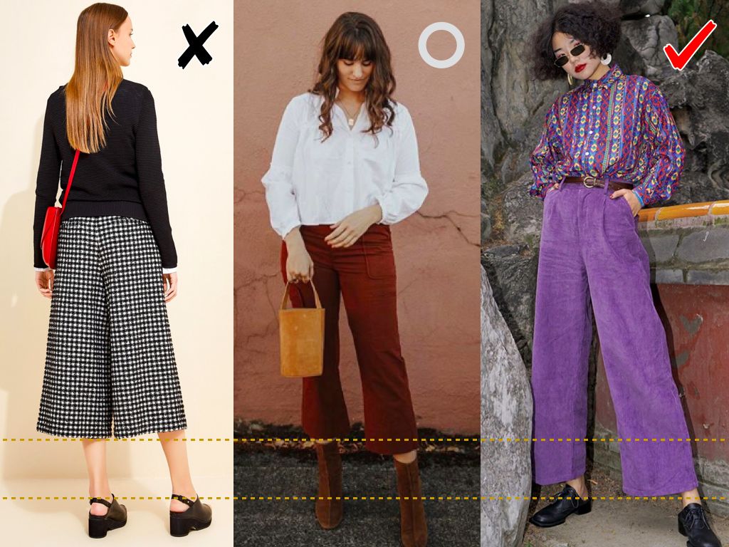 第一种同学(后面简称梨形腿粗)挑阔腿裤的时候抓住三个要点就好: