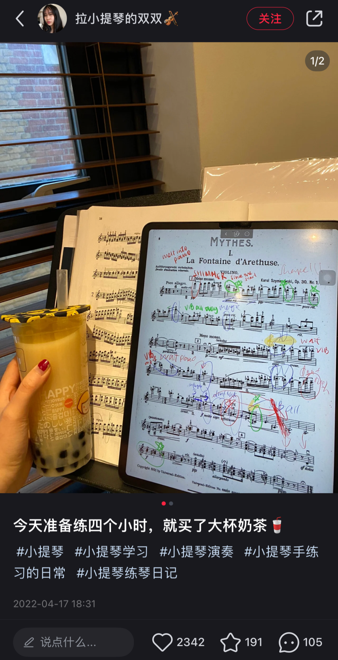 不少古典音乐从业者也开始在小红书分享演出与学习的点滴,且受益于小红书去中心化的流量机制,非专业博主也能收获上千的点赞。