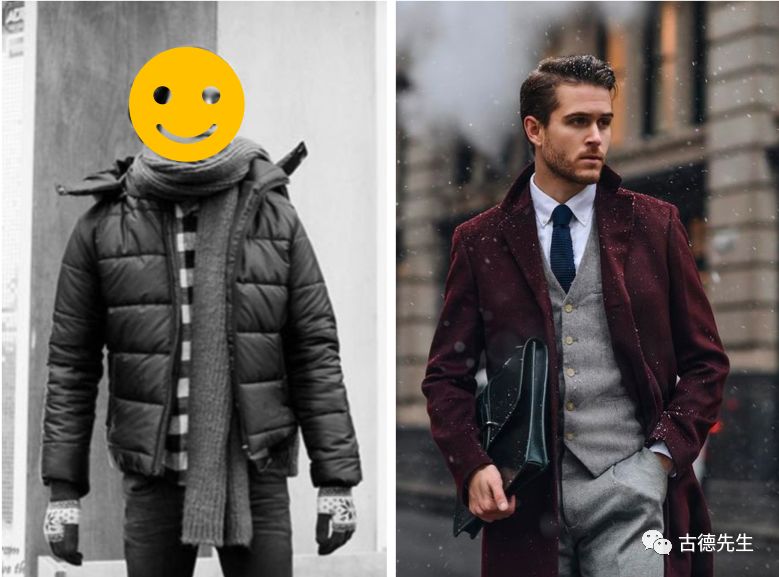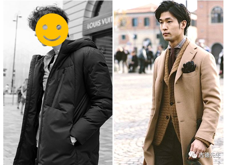 应对寒冷的天气,先生们既想有温度还能有风度的抗寒服饰:羽绒服和西装领大衣,先生会选择哪一个?