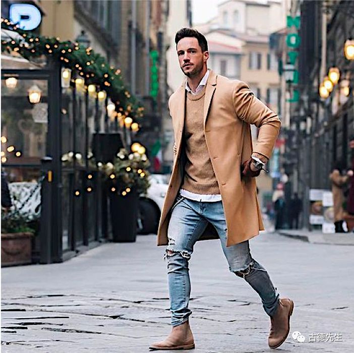 穿搭建议2:西装领大衣+高领毛衫,先生们分分钟变暖男;