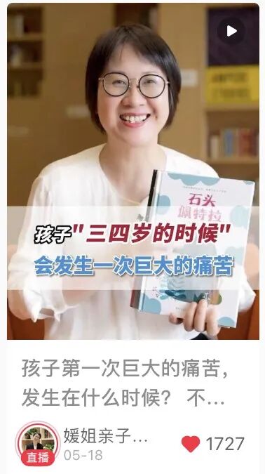 接下来,我想分享两个案例。一个是@媛姐亲子频道,从账号名字和简介上能看出这个账号的定位是亲子关系、亲子教养领域。她有这样一条“笔记”——“孩子三四岁的时候,会发生一次巨大的痛苦”,这个标题直指用户痛点,点明了使用人群;“笔记”开头说:“不瞒大家说,这本绘本把我看哭了,它让我知道,培养一个自信的孩子究竟有多重要。你知道孩子人生中第一次巨大的痛苦发生在什么时候吗?”形成了一个能够引起用户注意的噱头,再给出答案,“在他三四岁的时候……孩子三四岁,最明显的变化就是变‘犟’了……”形成与目标用户群的共鸣,再通过一个绘本故事、一本书,给到用户解决方案,顺利地把书籍推荐出去。