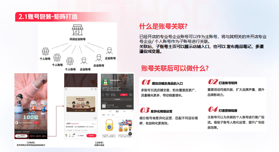 有的商家说,自己的产品有比较多的维度,有童书、成人书,还有教辅,没有办法把所有内容放在一个账号上去运营。那么,我们可以构建一个矩阵,通过一个主账号关联6个子账号。每个子账号可以确定不同的定位,发布不同的内容。尝试一段时间之后,看哪个账号的数据更好,就可以持续加大该账号的运营力度,也就是“赛马机制”。