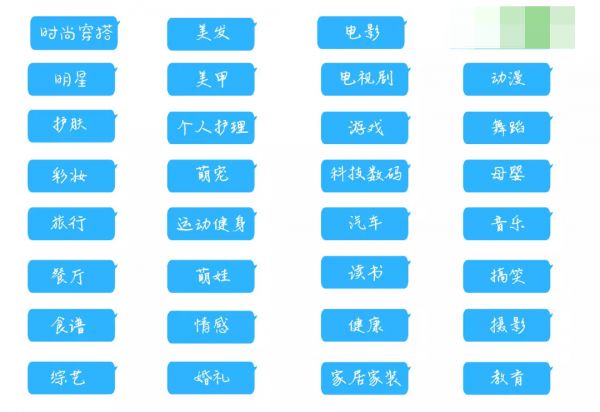 目前,小红书的内容话题覆盖明星、时尚穿搭、护肤、彩妆、旅游、食谱、运动健身、婚礼、教育等31个话题,用户可以根据自己感兴趣的话题自由选择,至少选择4个。