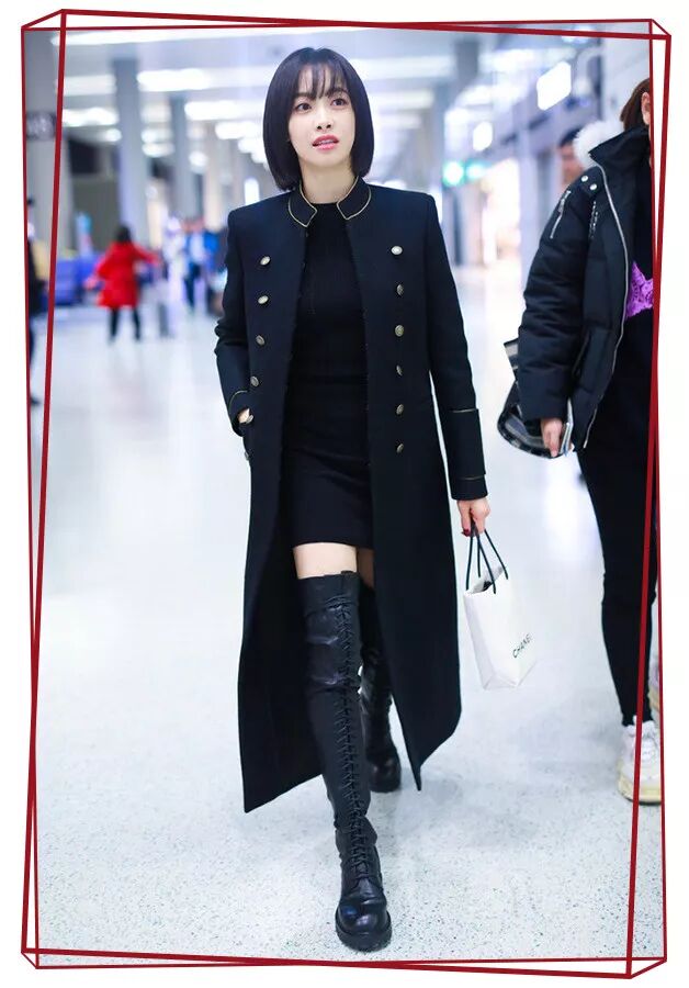 黑色的双排扣大衣和Bob头