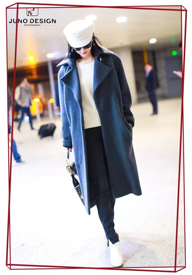 藏蓝色的大衣和包包颜色一致