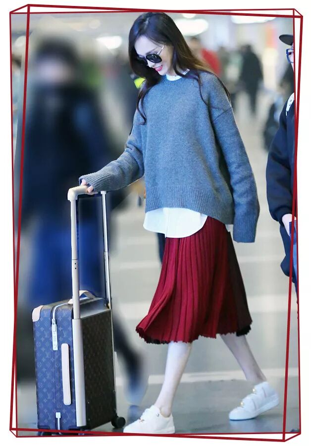 刚结婚的糖糖用白衬衫搭配灰色毛衣