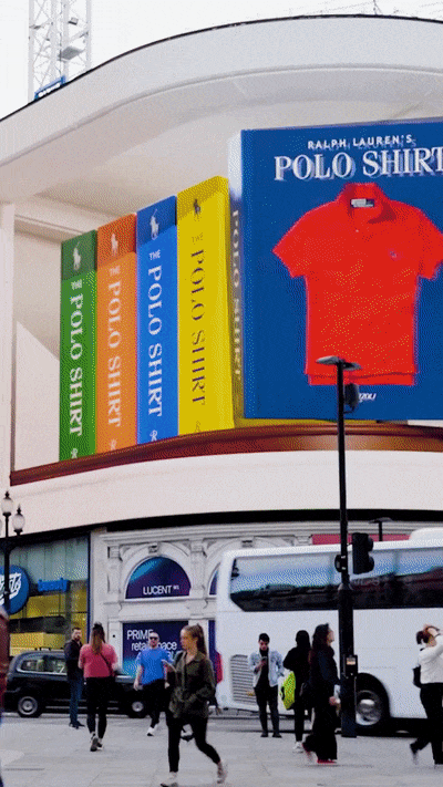 拉夫劳伦将这本新书的巨无霸版本放进了伦敦皮卡迪利广场的 3D 广告牌里. 图片来自:Instagram @poloralphlauren