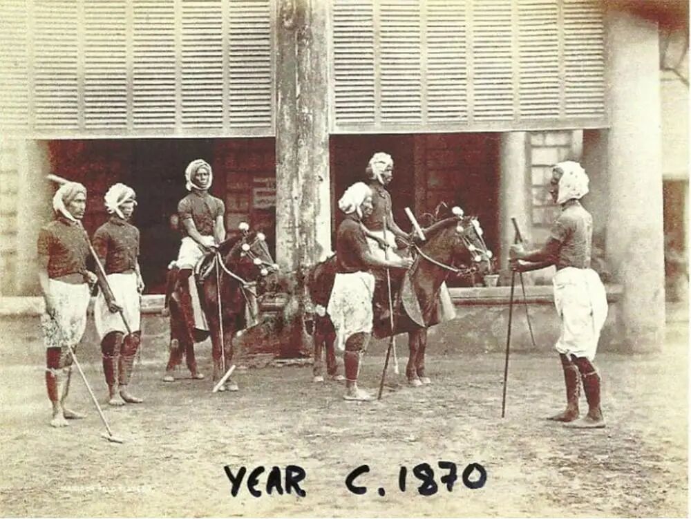 马球比赛. 图片来自:tumblr马球运动是将马术与球类结合的小众运动,最早可以追溯至波斯时代,早期没有规范的马球运动看起来就像是一大群人骑着小马跑来跑去。1850 年代,在英国中尉 Joseph Sherer 的大力支持下,现代马球运动在印度东北部的曼尼普尔邦得以发源,并以经典的英式风格成立了第一家马球俱乐部。当地的印度人为了在马球运动中活动更加灵活,用纽扣固定衣领,Polo 衫的雏形出现了。从 1870 年代留存下来的老照片可以看到,当时印度人已经穿着与后来 Polo 衫很相似的球衣了。