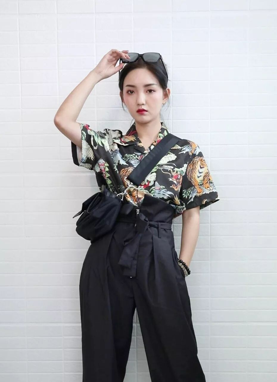听起来完全不搭边界的两样东西,混搭在一起的效果却出人意外的好。男式的龙虎图案有种酷帅感,花苞裤自带优雅效果,两者碰撞,产生刚刚好的娘man结合感。