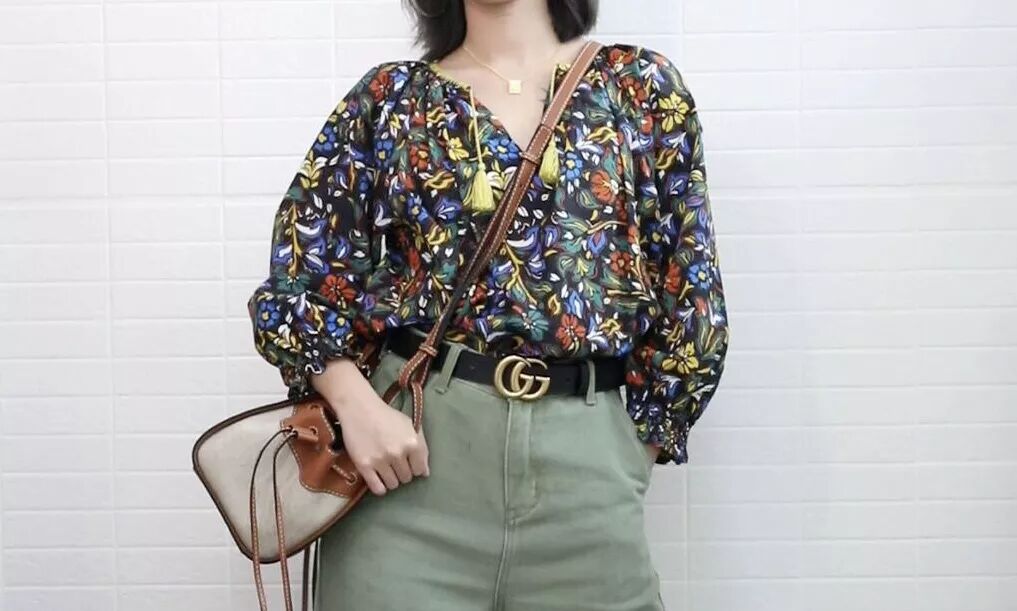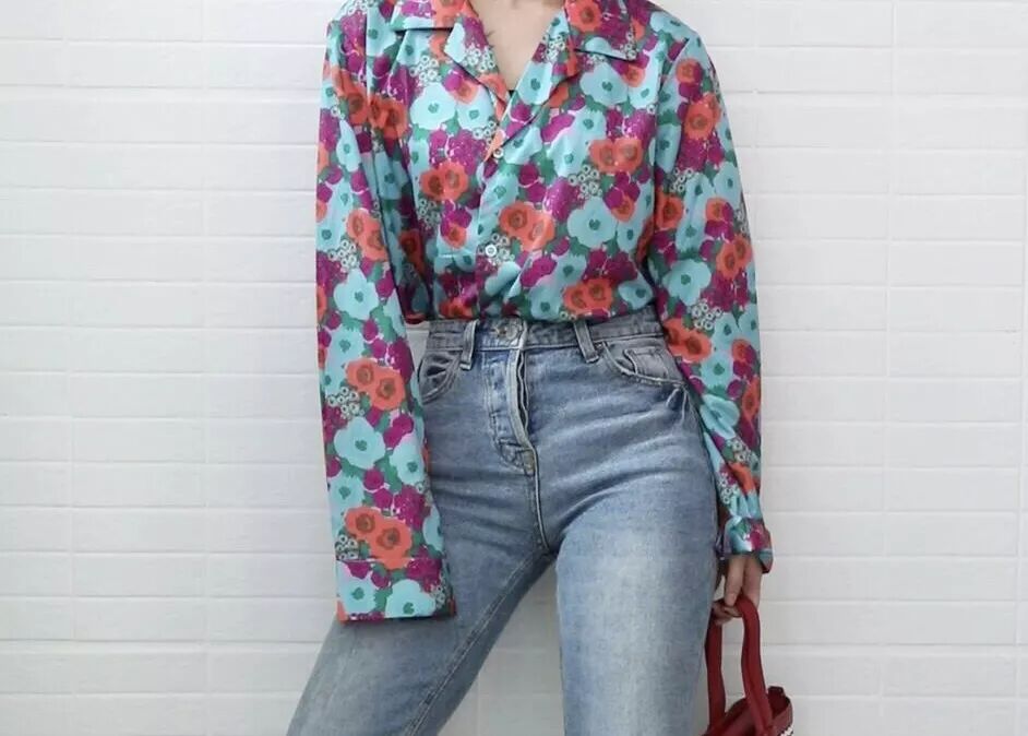 这件衣服绝对是我衣柜里“娘”味十足的花衬衫了,它的设计使短款罩衫造型的,能一瞬间把腰线拉高。那么用一条高腰的复古喇叭裤搭配,不会有中规中矩的女人味,反而透露出了慵懒随性的感觉。