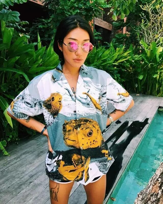 最常见的肯定是夏威夷风格的,最标准的就是印花元素比较多,代表着热情和开朗。通常情况下,女生所穿的夏威夷风格花衬衫,肩部相对比较宽阔,整体的版型也较为宽松,能够展现出一种豪放的气息,可以直接单穿,也可以当成防晒的外套,内搭小吊带。