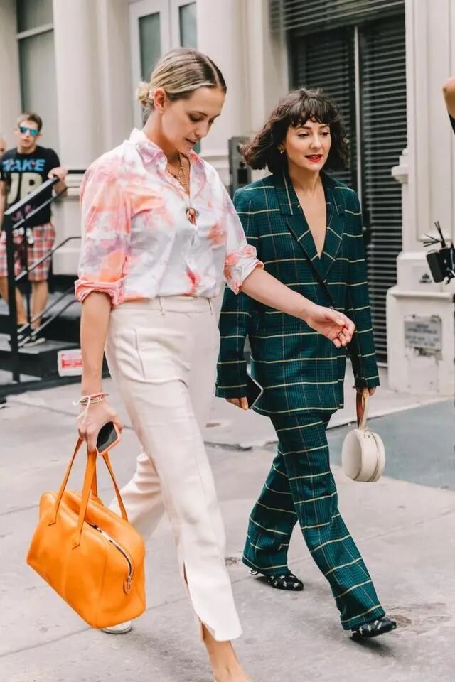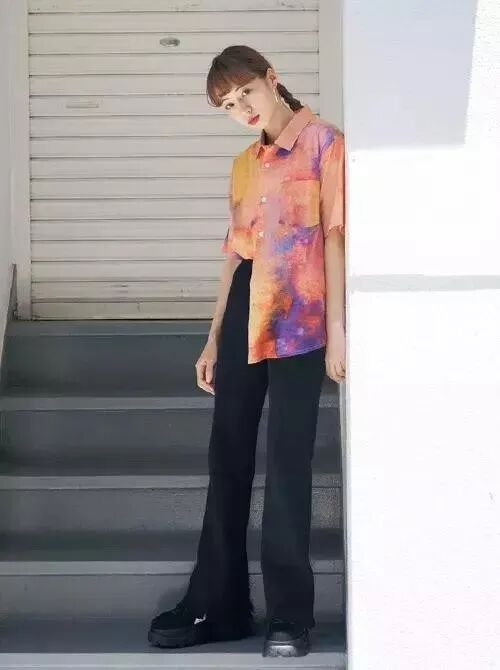 尤其是两种都是鲜艳的颜色,看上去特别有违和感,所以底色和花色选择得好,夏天所穿的花衬衫就是非常时髦的。
