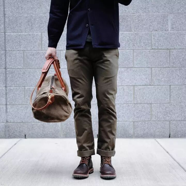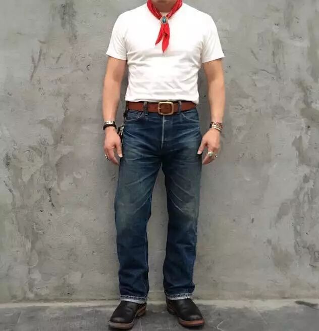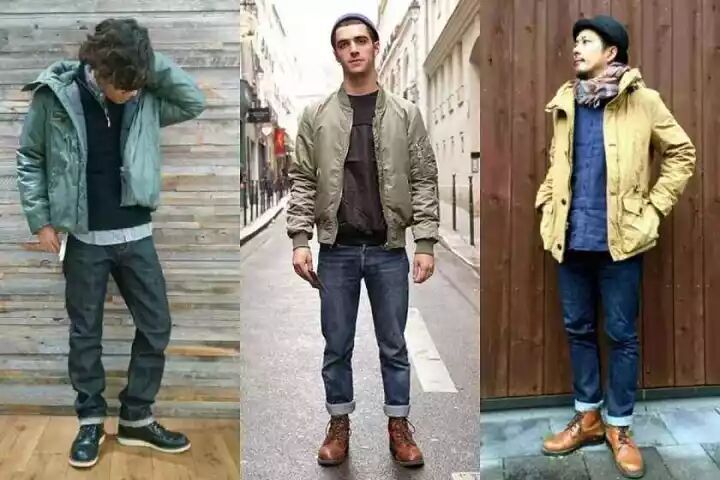 如果你比较瘦,那你版型上的选择会更随意,卷裤脚/把裤脚塞到靴子里、或者盖住鞋帮都很适合你。