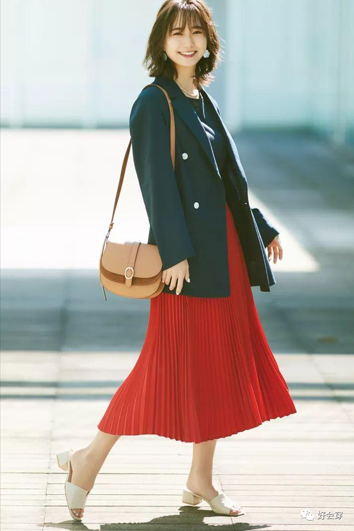 基础款的西装和半裙搭配,因为细节的点缀也变得简约不简单,带着文艺和复古的气质,整个人都显得温柔了不少。
