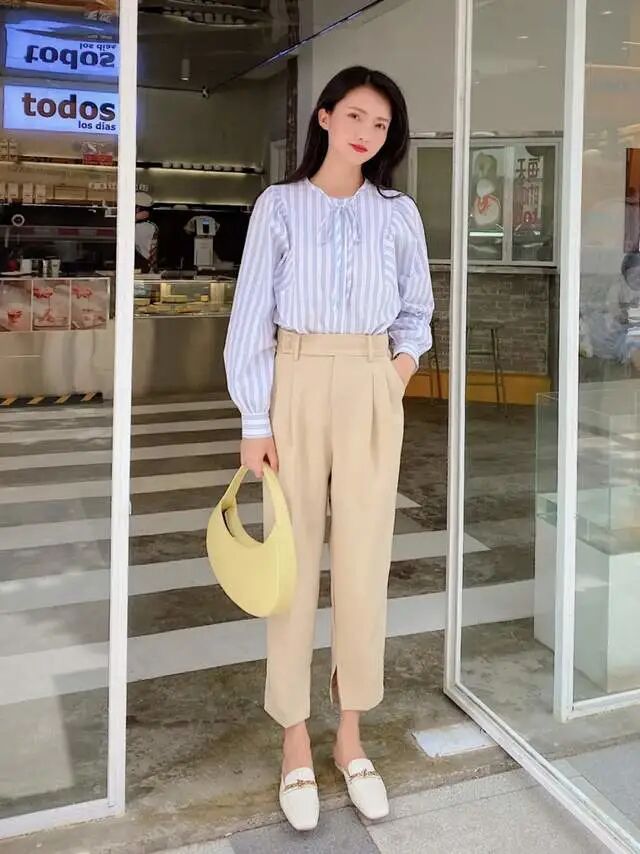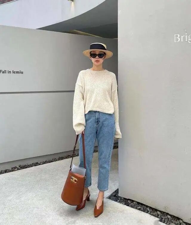 懒人鞋本身有轻巧方便的外形,所以下半身的搭配自然也要保持一致,不能松松垮垮或者过于拖沓。太宽大、长的下装将鞋子给盖住,就会显得脚部很轻,而上半身过于厚重,很不协调。