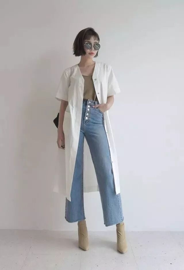 以各种单品组合打造出整体一字线条,不过度添加的层次感才是通往时尚的捷径。举例来说,可以将连身裙当作罩衫使用;穿上厚底凉鞋,从底部增加身高;或是统一整体单一色调,将上衣随意的扎进去,不经意地做出线条变化。