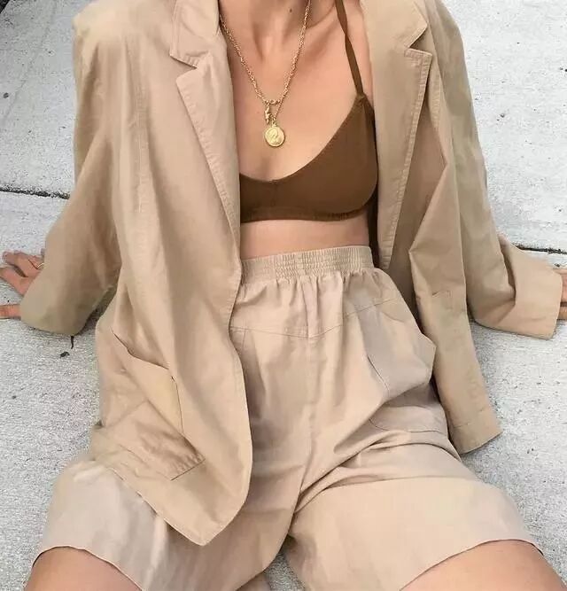 同色系穿搭让视觉延伸,看起来比例拉长。