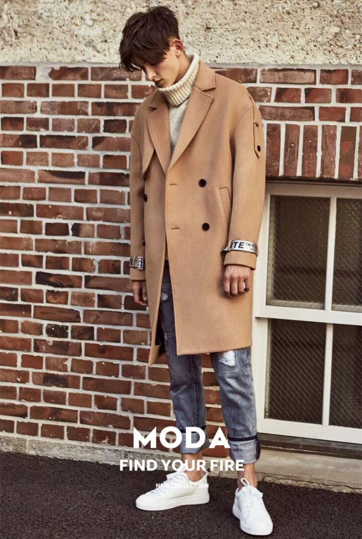 驼色呢大衣是长腿型男冬季必不可少的外套。与同色系高领毛衣同属大地色系,搭配起