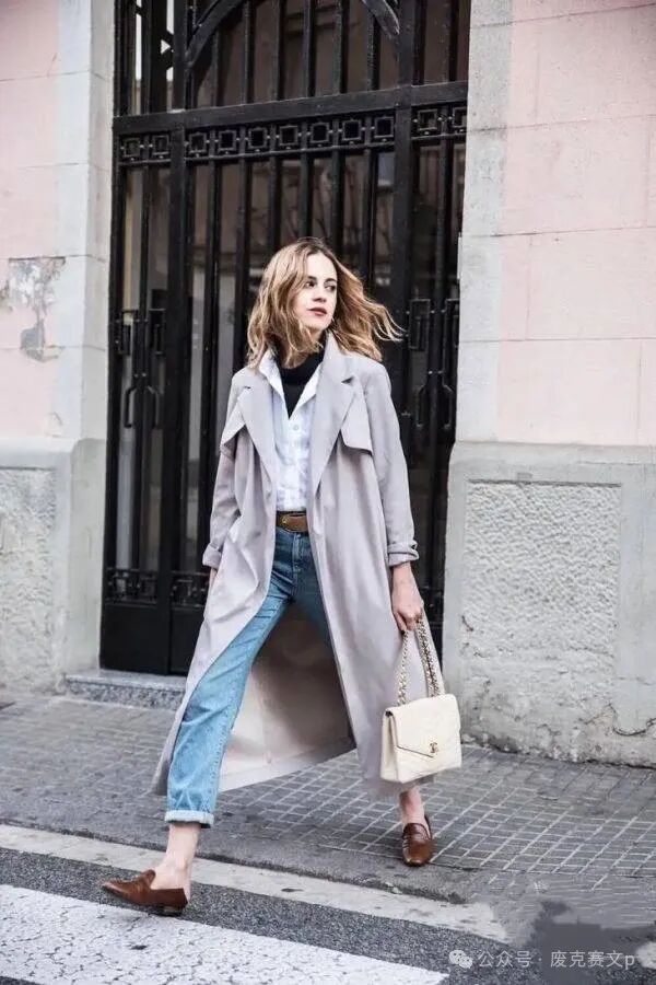 张蕾的穿搭巧妙地将叠穿与基础款搭配相结合,展现出既时髦又减龄的效果。在上半身,她巧妙运用叠穿的方式,选择了版型宽松的衬衫搭配高领打底,营造出舒适自在的层次感。而下半身则选择了高腰牛仔裤,避免了宽松版型衬衫可能带来的身形压低感。