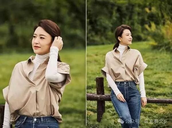 "张蕾气质与洋气并存!短袖衬衫搭配高领打底,时髦减龄,展现出她不仅有品味,还散发着迷人魅力!"