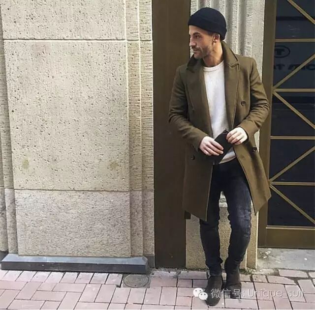 如果你生活在寒冷的北方,可以学习韩国欧巴们,选择一款中长款的毛呢大衣,深蓝色,军绿色以及酒红色都是受欢迎的颜色。
