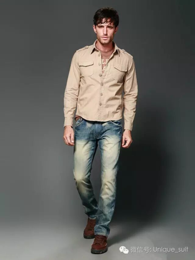 腿型适中的男士相对来说选择的余地就要大得多了。买牛仔裤的时候,主要考虑更多的是款式的流行度,根据自己的气质及风格去挑选车工线,裤袋、磨砂等装饰,如最简单的直筒版型,在水洗及颜色的选择上如素色,轻度水洗为重。
