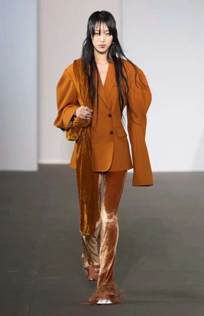 针织、羊绒、绸缎、天鹅绒等手感柔软亲肤的面料展现出居家基调,穿上它们,你既可以光脚坐在木地板上享受家的温度,也可以套上一件西装在职场上杀伐果断。