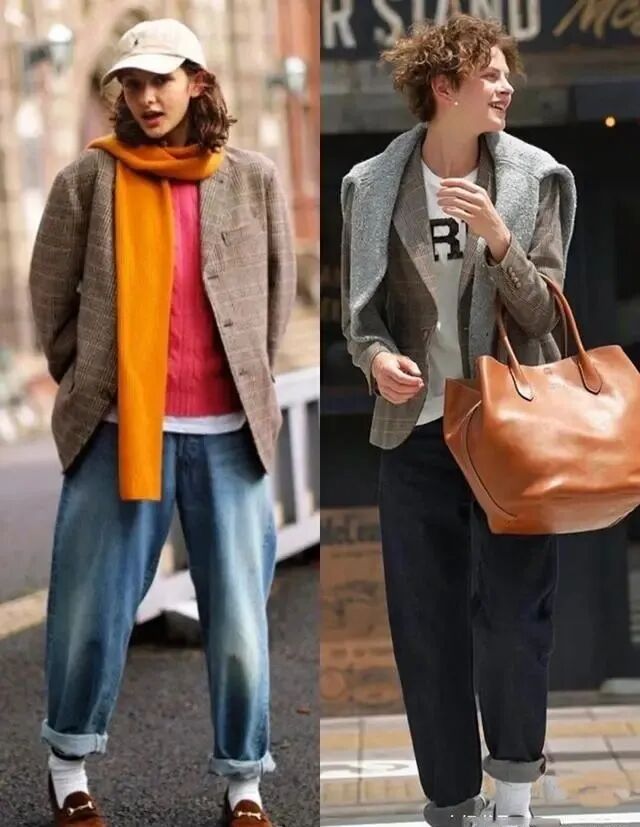 穿格子西服时就搭配卡其色鞋子、包包,增加复古氛围。或者是让围巾呼应外套上的格纹,造型不突兀,温暖又时尚。