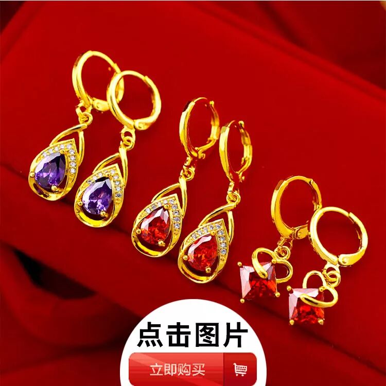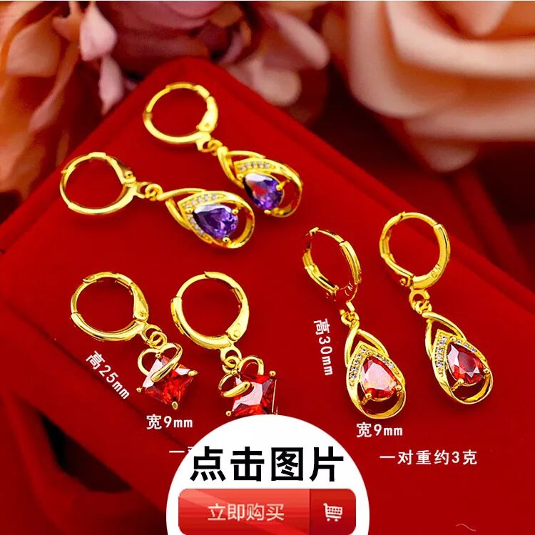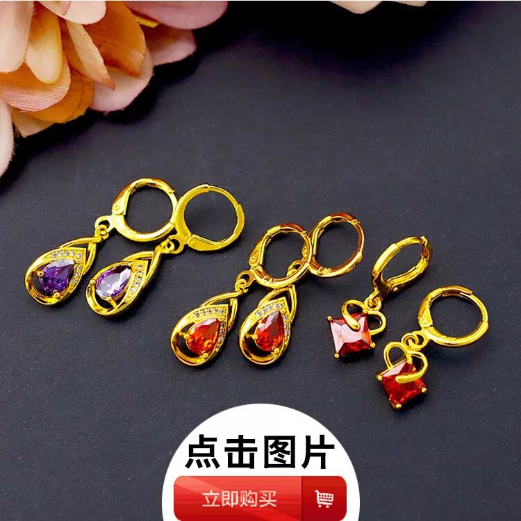 NY001561新款越南沙金彩钻宝石水滴耳环TZF