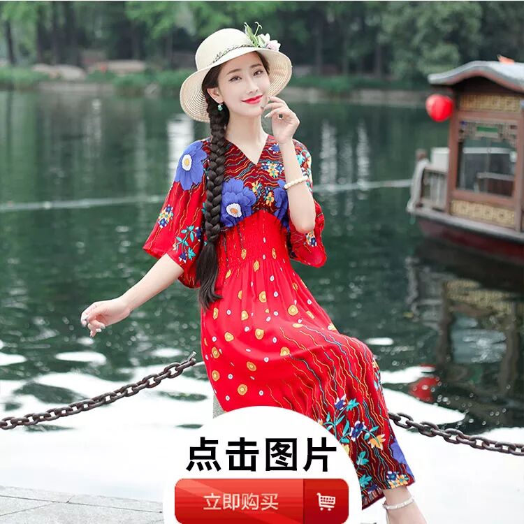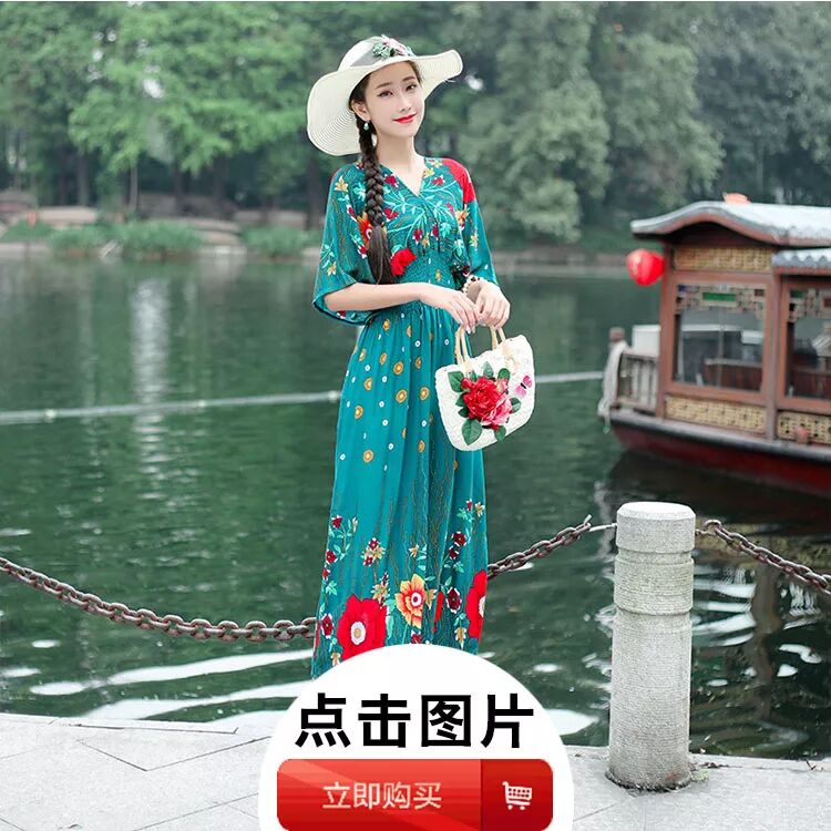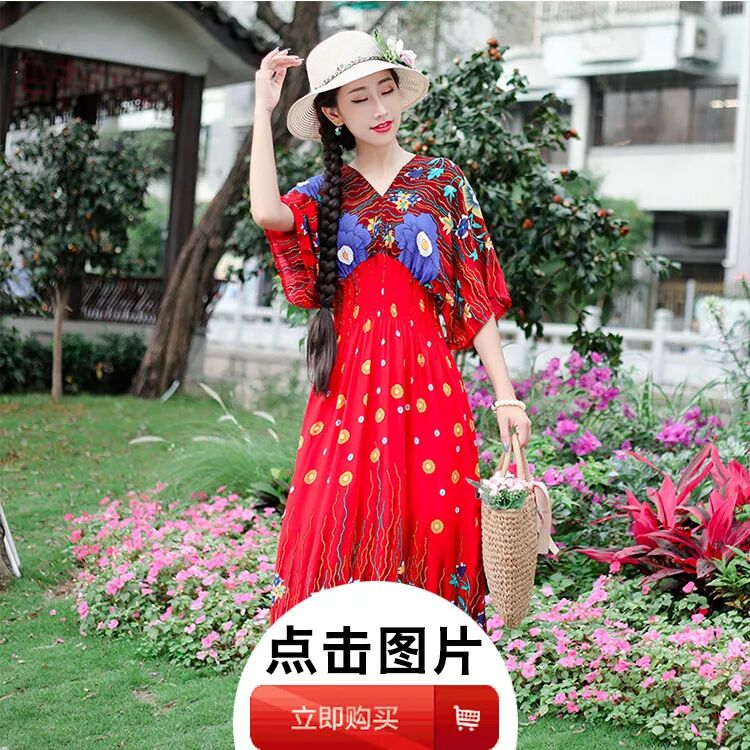 AHM604xjl新款波西米亚海边度假收腰沙滩连衣裙女TZF