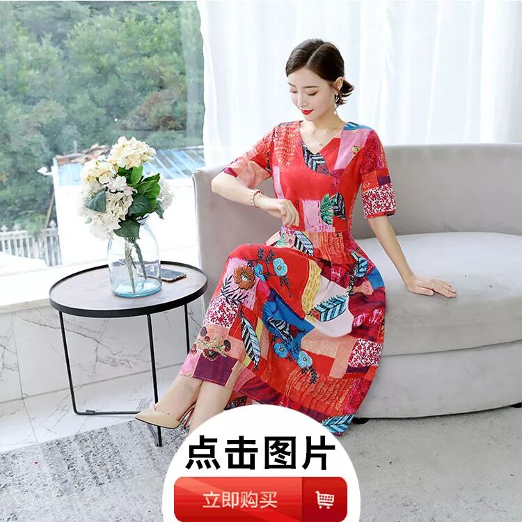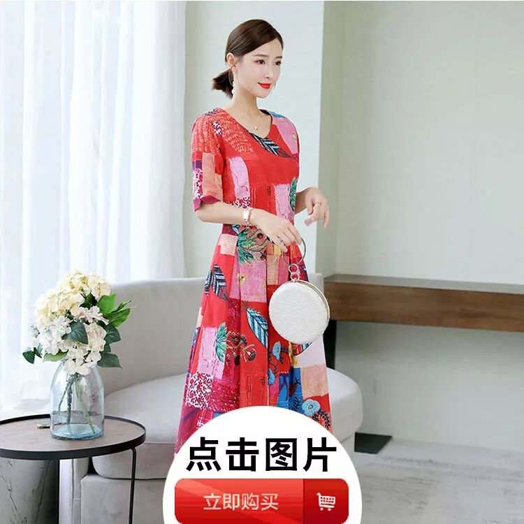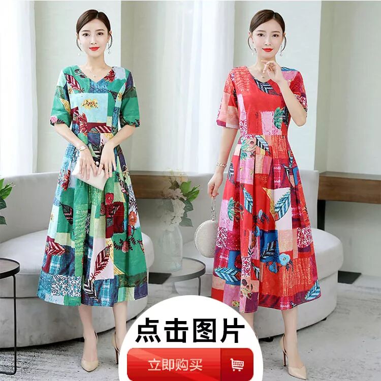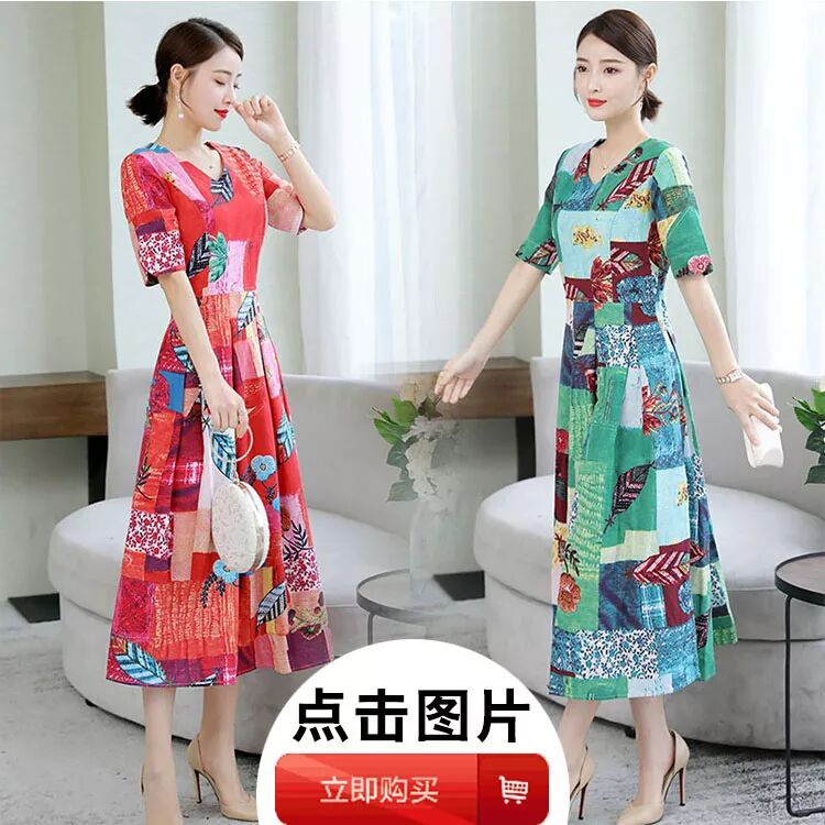 GN8864RJ新款复古文艺棉麻印花连衣裙TZF