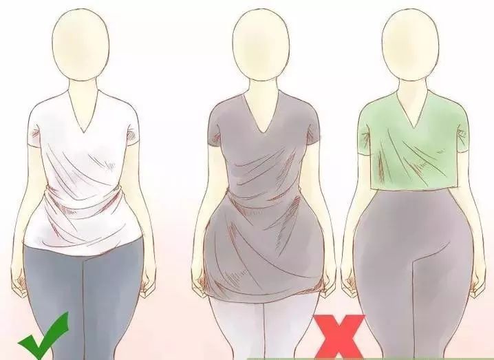 简单说,梨形身材就是下身较胖。所以在选择上衣的时候,衣服长度很重要,要避免把髋部宽的缺点暴露出来。衣服太长或太短都会把缺点暴露出来,最好的长度是恰好与髋部齐平(就是大腿根部的位置)。