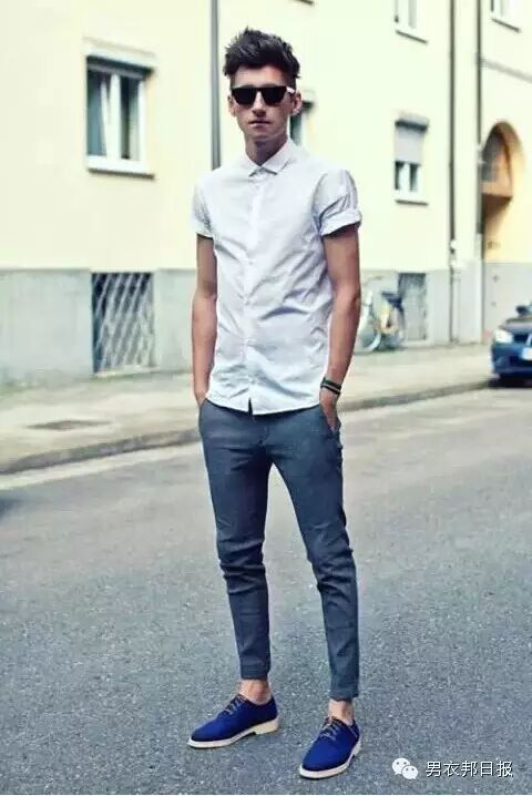 短袖衬衫的穿搭上一定要注意合身,袖长不宜太长或宽大,可以将袖口微微卷起,露出一点手臂的肌肉, 不然就会显得很老气,因为有一些老一辈的下棋伯伯也很爱穿宽松的短衬衫。