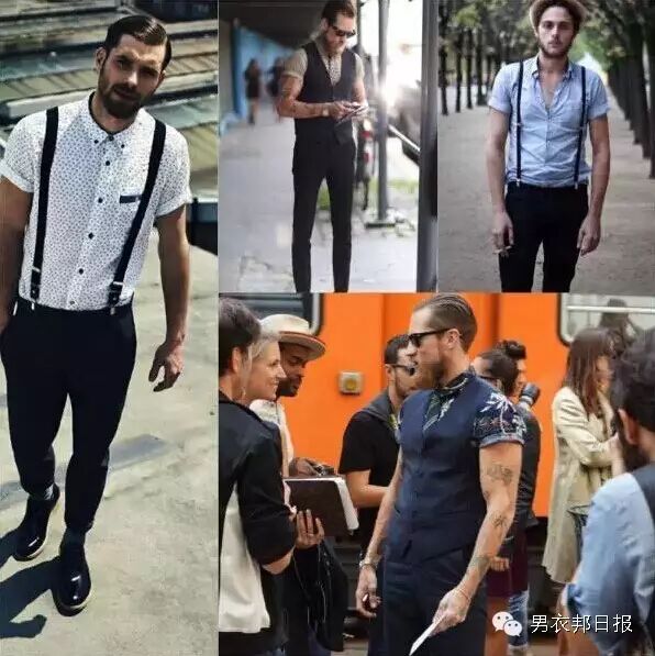 一如前面提到的,短袖衬衫是比较休闲的单品,不太适合打领带,如果想用短袖衬衫搭出比较正式的造型,可以用吊带来取代,或是像Justin OShea 一样,加上西装背心。