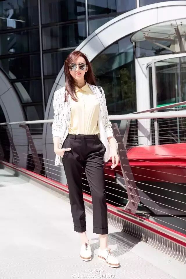水蓝色衬衫+白裤子,慵懒又惬意,很养眼很舒服。