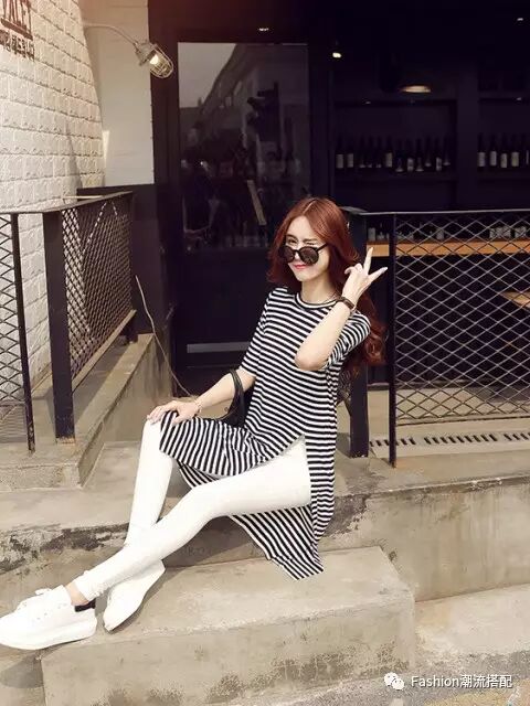经典的黑白条纹元素前卫摩登,永不过时,左侧高腰开叉设计打破单调感,让你显得与众不同。短袖的设计,非常清凉,修饰手臂线条。配上一条打底裤,一秒变身街拍达人。
