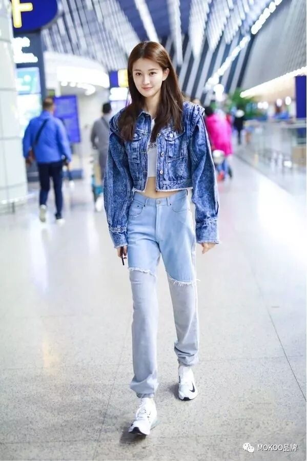 “牛仔外套+运动背心,做一个酷girl