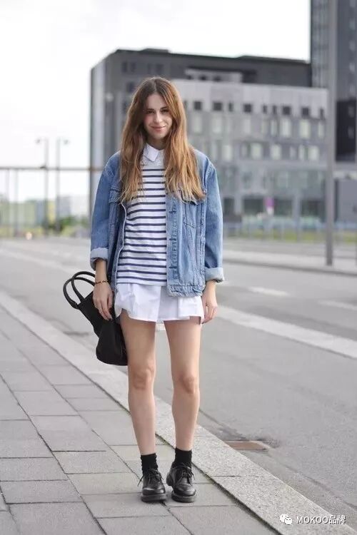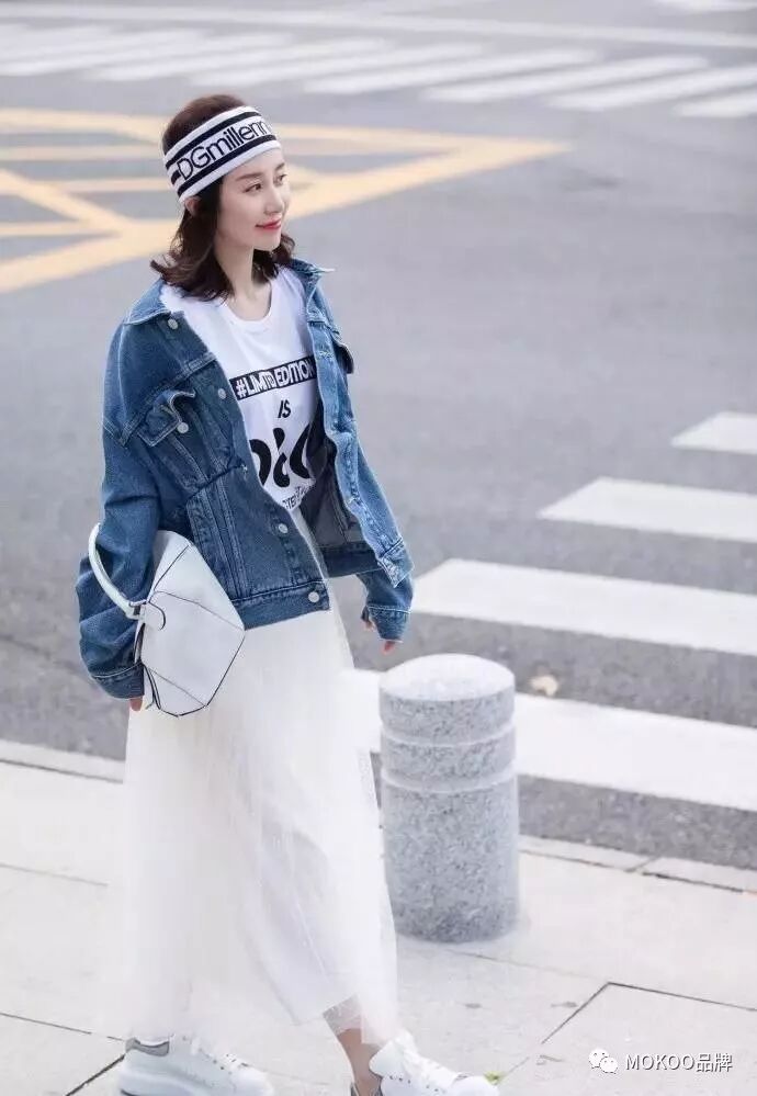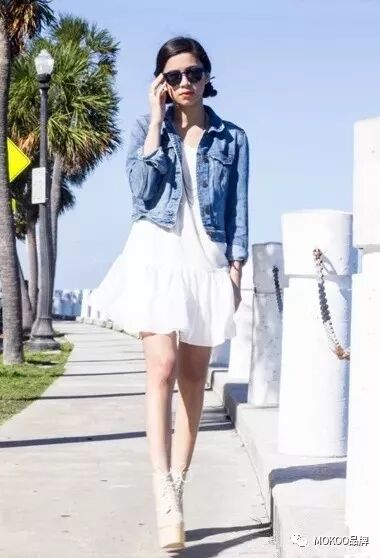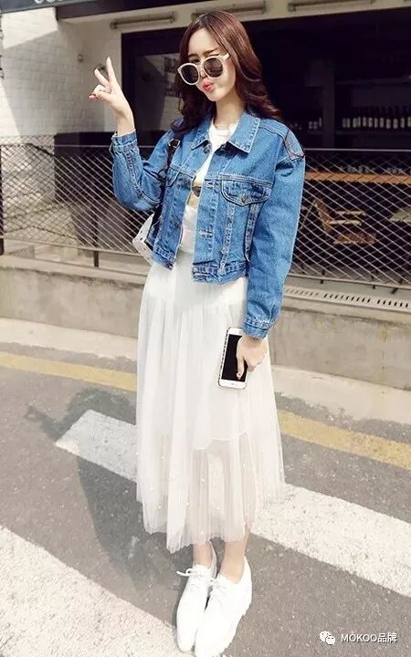 白裙子与牛仔外套的组合