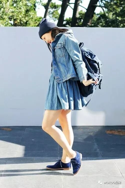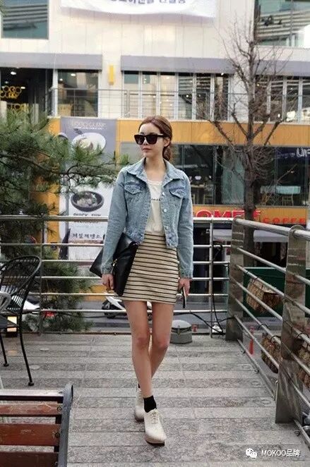 ”牛仔外套+短裙,让人瞬间回到学生时代