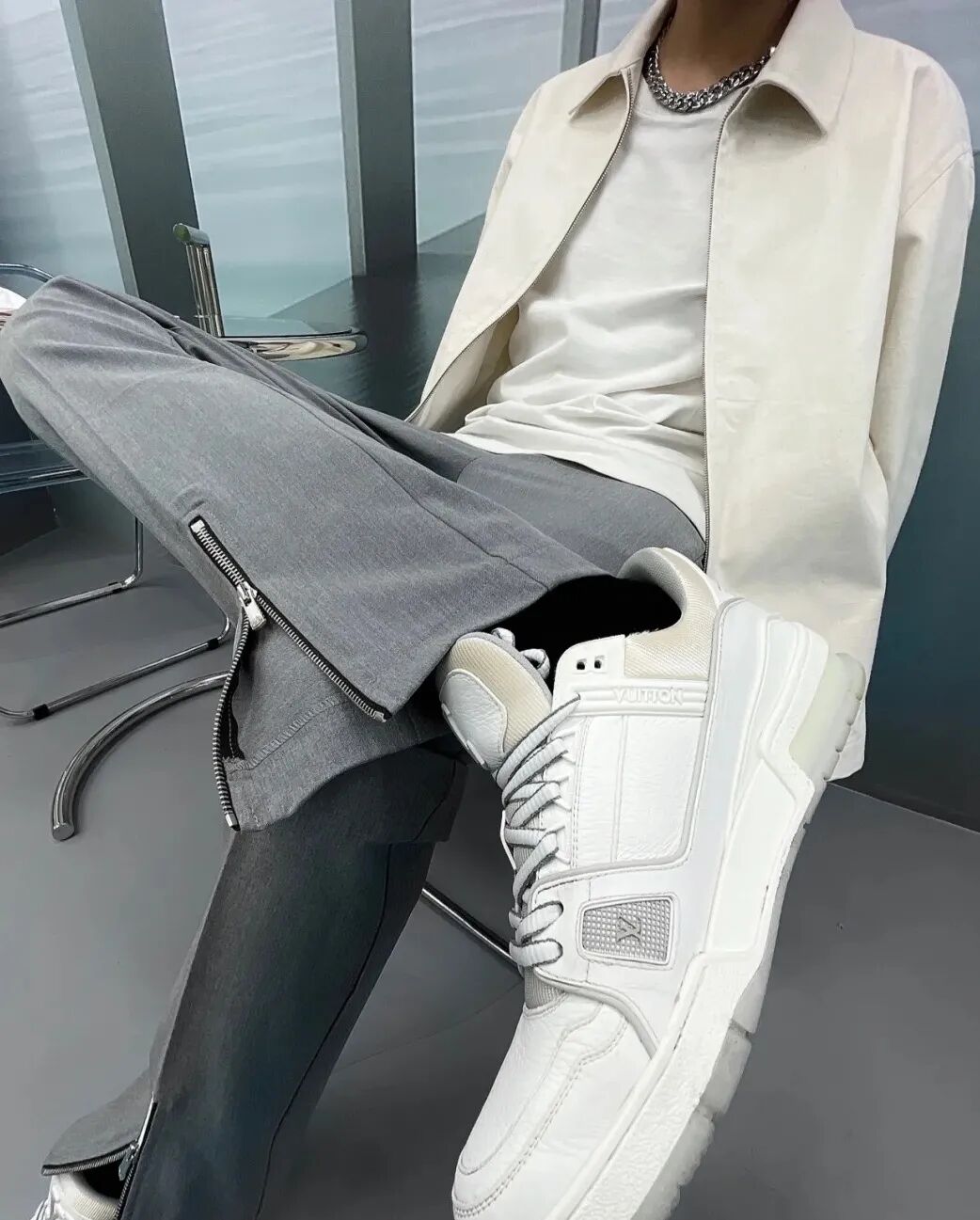 简约白色系+宽松高腰裤+轻奢小白鞋