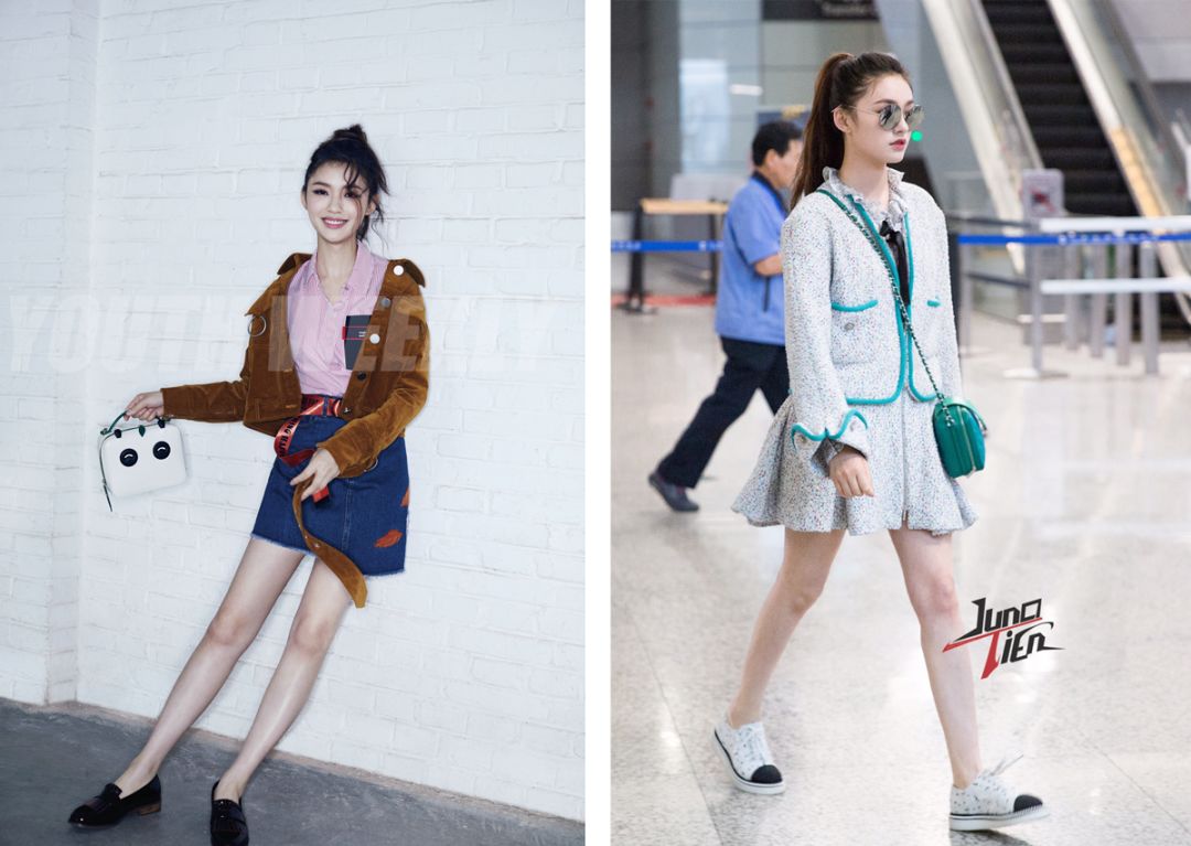 右边神情有些落寞,是自公布恋情后的首现身,可能被男友的粉丝群攻有些难过吧!但这身私服明显好很多,符合年龄和人设,唯一能把内搭换成短款就完美了。