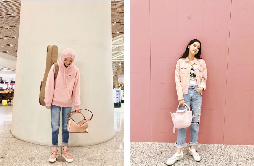 粉嫩是年轻girl不可获取的元素,管它什么单品只要贴上了粉色就是年轻人的爱。大长腿可能都爱潮牌,娜比追潮牌也很厉害的。