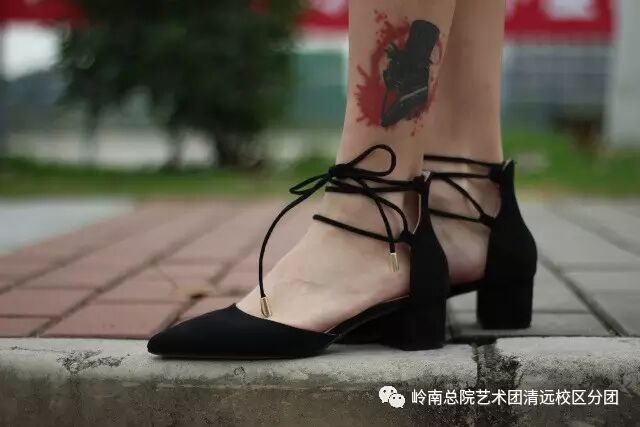 交叉绑带中粗跟单鞋+纹身