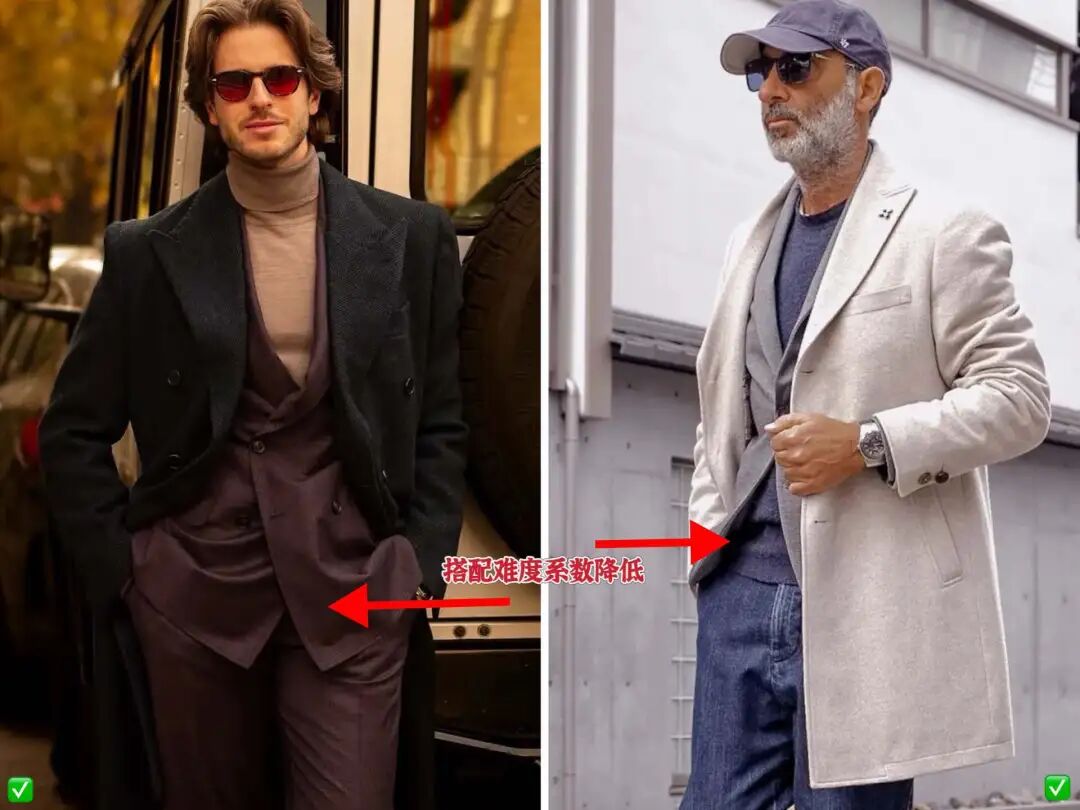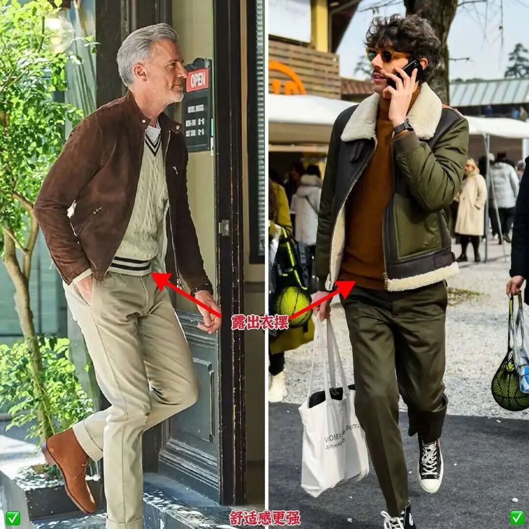 内搭比外套长虽然是很时髦,但这样的穿着考验穿搭功底不说,还会显得中老年男人不够成熟稳重,且选择这种“内短外长”的穿搭方式,可以让整个人看起来更为利落干练。